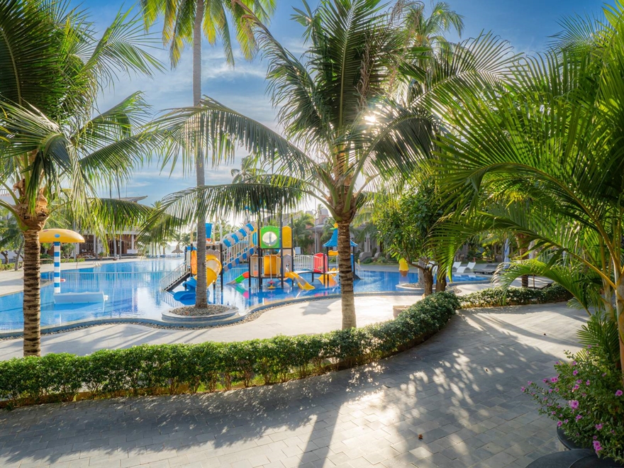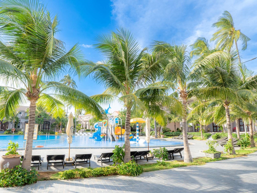 - Có hai hồ bơi lớn với khu vui chơi dưới nước và hồ bơi vô cực, tạo cảm giác rộng rãi, hiện đại bậc nhất Mũi Né.