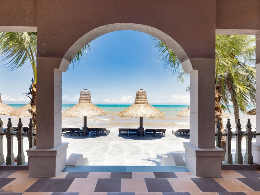 - Le’ VIVA RESORT MŨI NÉ mang phong cách kiến trúc Châu Âu cổ điển sang trọng, tinh tế. Ẩn mình dưới những rặng dừa và những tán hoa lộng lẫy, mang đến cho du khách một không gian yên tĩnh, khung cảnh thơ mộng, khí hậu đại dương trong lành.