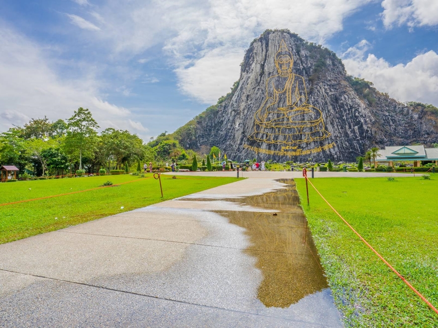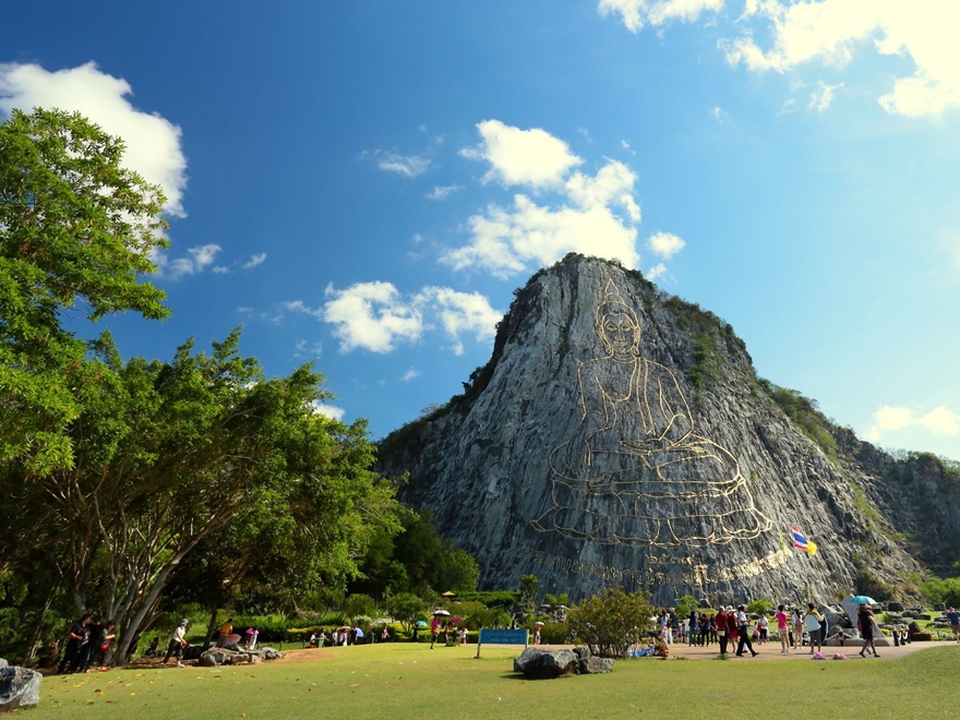- 14:00 PM: Ghé thăm Khao Chee Chan - hay còn gọi là Núi Phật Vàng. Điểm nổi bật của nơi đây là hình ảnh Đức Phật Thích Ca Mâu Ni khổng lồ được khắc trực tiếp trên vách núi đá bằng tia laser và dát vàng, cao khoảng 130 m.