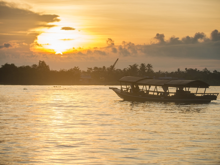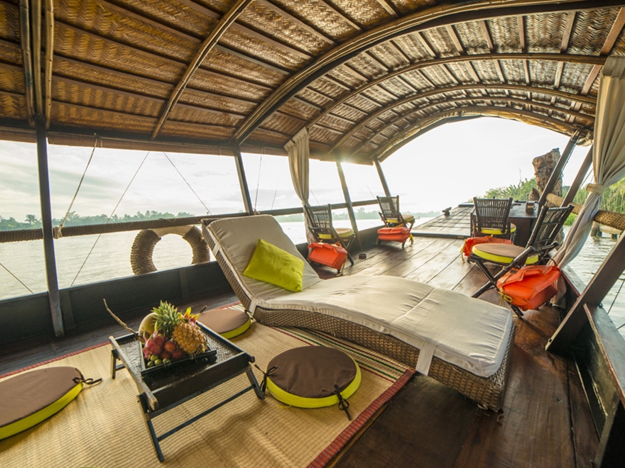 11h30: Dùng bữa trưa tại Nhà hàng Le Longanier. Nhà hàng được xây dựng phong cách thuộc địa tinh tế, tọa lạc trong khu vườn nhiệt đới xanh tươi bên bờ sông và được bao quanh bởi những cây ăn quả đặc trưng địa phương: xoài, cam sành, bưởi da xanh, bưởi long Cổ Cò, nhãn, mít…