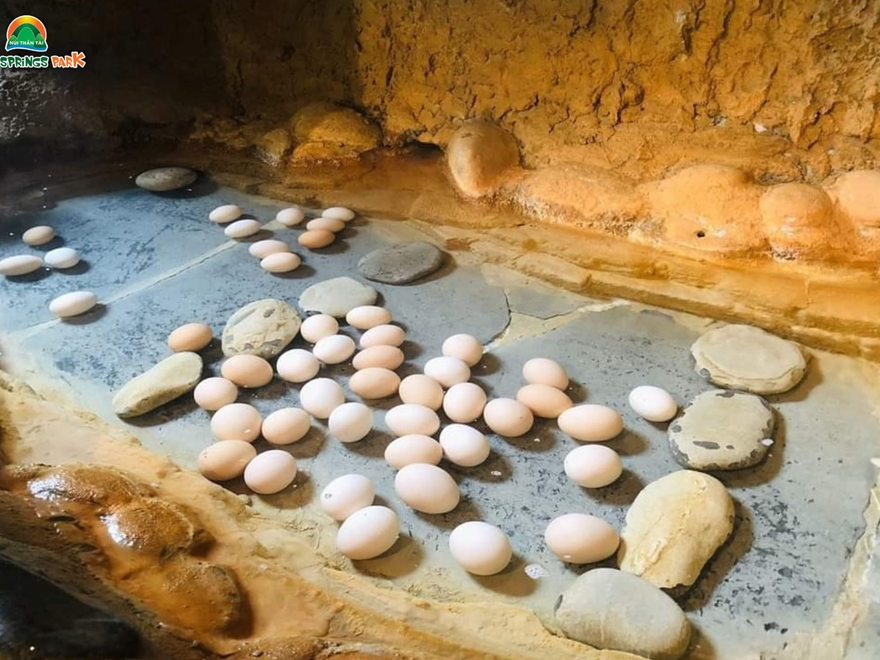 • Trứng trường thọTương truyền, trứng gà là một vật bổ dưỡng với lòng đỏ và lòng trắng bao bọc lấy nhau như âm và dương (đỏ dương, trắng âm) và kết hợp với nguồn khoáng nóng từ Long Huyệt sẽ đem lại một phương thức chữa bệnh vô cùng quý giá. Hương vị đặc biệt này chỉ có duy nhất tại khu du lịch Núi Thần Tài