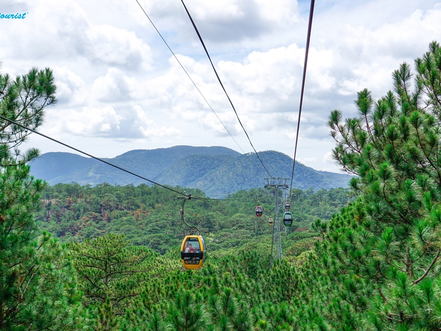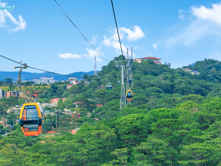 Trên suốt hành trình cáp treo, vị trí lý tưởng nhất để chiêm ngưỡng cảnh sắc là khu vực giữa cột số 4 và 5 – nơi có độ cao nổi bật, cho phép bạn phóng tầm mắt bao quát toàn cảnh thành phố. Khi đến đoạn giữa tuyến đường, bạn sẽ được ngắm nhìn vẻ thơ mộng của Hồ Tuyền Lâm và những rặng thông xanh mướt trải dài. Đừng quên mang theo một chiếc ống nhòm nhỏ để quan sát cảnh vật rõ nét hơn và cảm nhận vẻ đẹp thiên nhiên đặc trưng của Đà Lạt một cách sống động nhất.