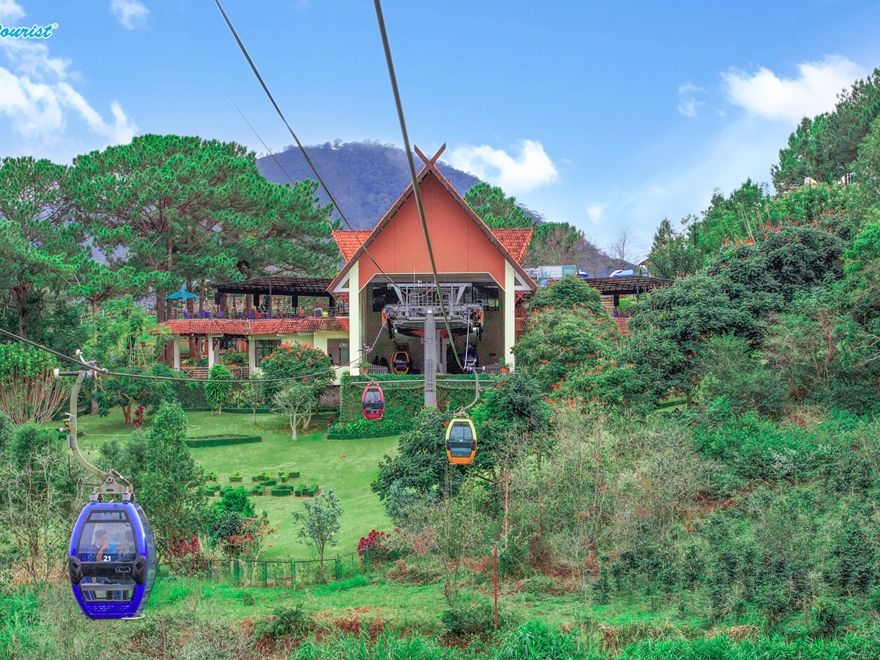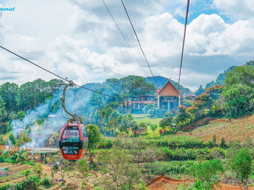 Chiêm ngưỡng Đà Lạt từ trên cao là một trải nghiệm độc đáo, mang đến cho du khách góc nhìn mới lạ và đầy cuốn hút. Chỉ trong 12 phút ngồi trên cabin cáp treo, bạn sẽ được đắm mình giữa không gian bồng bềnh mây trời của cao nguyên Lâm Viên – nơi mang vẻ đẹp yên bình nhưng không kém phần thơ mộng. Từ trên cao nhìn xuống, những sườn đồi nối tiếp nhau, Hồ Tuyền Lâm và Núi Voi như thu nhỏ lại trong tầm mắt, còn các biệt thự cổ kính hiện ra mờ ảo dưới làn sương nhẹ.